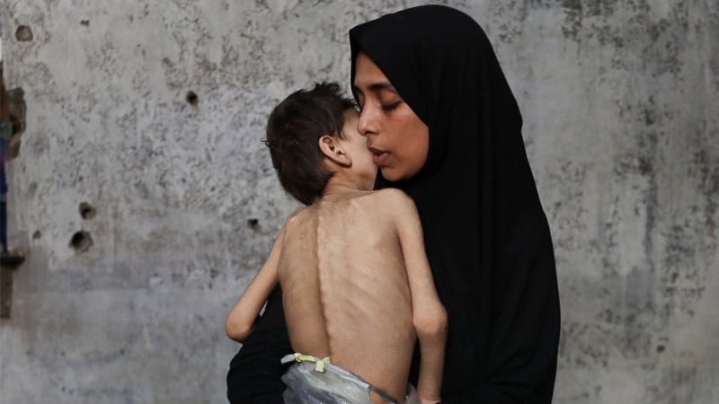 আমার সব সন্তানের শরীরের ওজন প্রায় অর্ধেক কমে গেছে। পাঁচ বছর বয়সী মেয়ের ওজন এখন মাত্র ১১ কেজি। আমার ছেলে মোহাম্মদ কেবল চামড়া ও হাড় হয়ে গেছে। সব সন্তানের একই অবস্থা। নিজের ওজন আগে ৮৫ কেজি ছিল। এখন ৫৫ কেজিতে নেমে এসেছে। আমি বিশ্বকে শুধু এটুকুই বলতে পারি, আমরা ধীরে ধীরে মারা যাচ্ছি; এই ট্র্যাজেডি থেকে আমাদের বাঁচান।